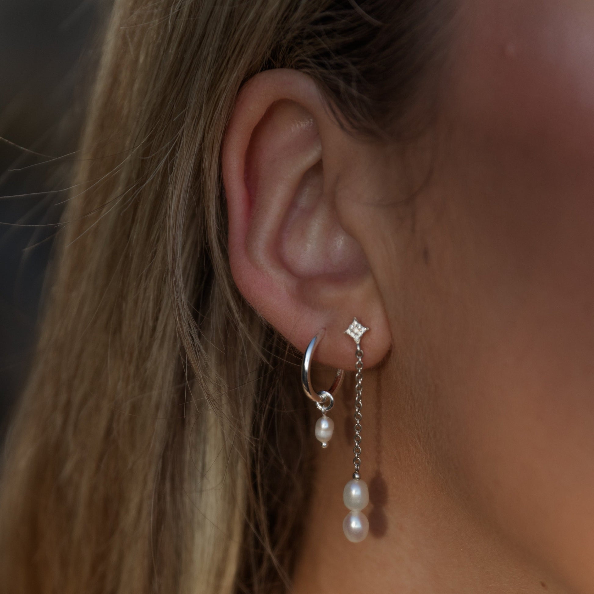Crafted on a 925 Sterling Silver Base - the Alice Pearl Huggies are the perfect everyday earring with a simplistic style to add to any look while adding a small touch of something special.